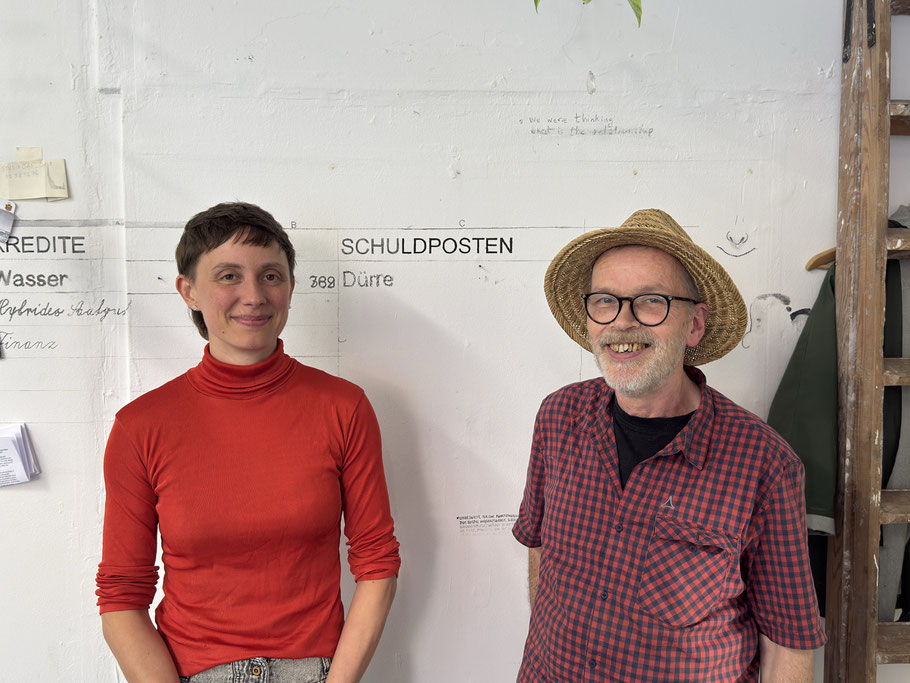 Zwei Künstler:innen in ihren Ateliers in der Ohlauer Straße 40. Die Räume wurden lange durch das Atelierförderprogramm des Senats unterstützt, doch durch Kürzungen im Haushalt könnte dies bald entfallen und über 600 Kunstschaffende in ganz Berlin ihre Arbeitsräume nicht mehr bezahlen können.