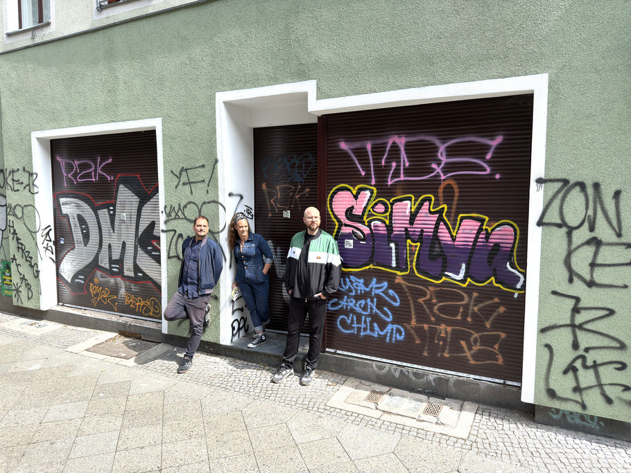 Drei Mitglieder von „Bizim Kiez“. Die Initiative setzte sich 2015 für den Erhalt eines Gemüseladens in Kreuzberg ein – und feierte gegen einen großen Investor einen Sieg. Der Laden konnte zunächst bleiben, dann jedoch wurde der Inhaber krank. Bis heute steht das Geschäft leer.